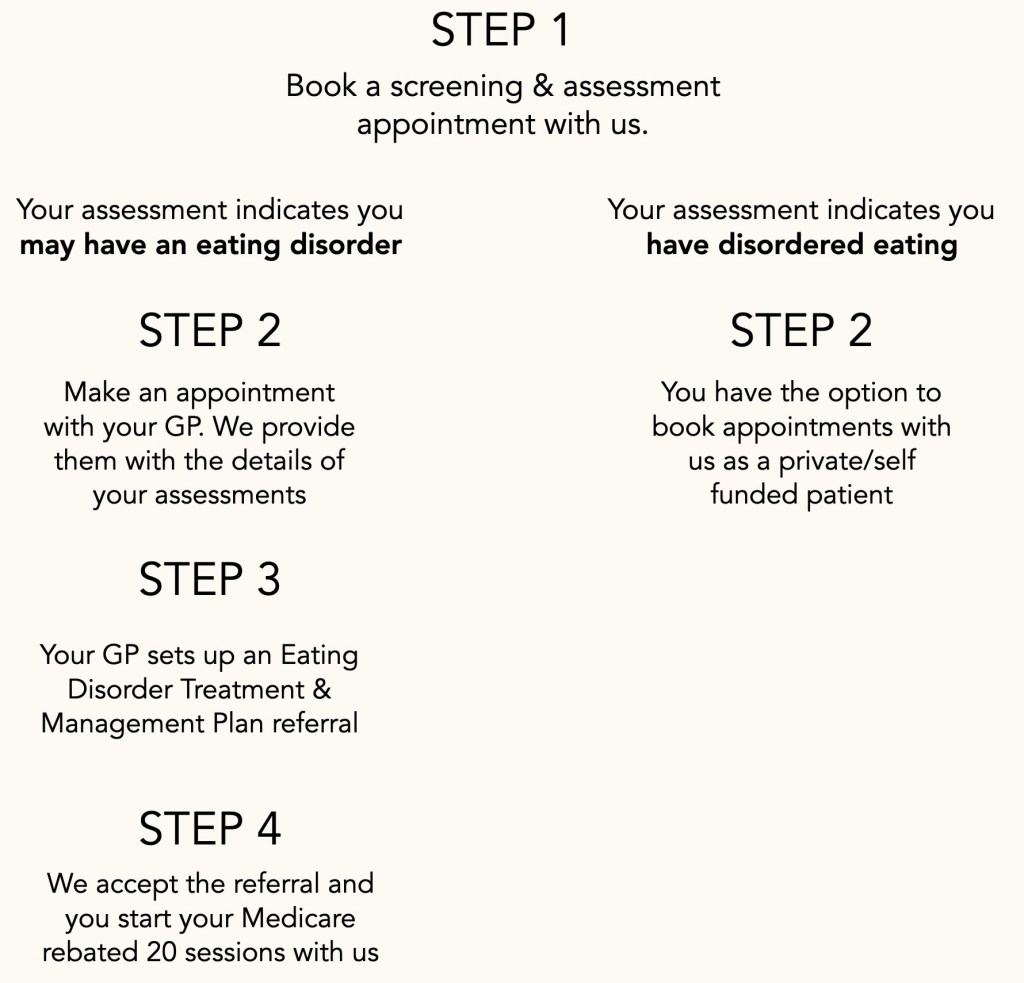 If you answered YES to 2 or more of the questions above you (or the person you know) may be at risk of having an eating disorder. Here’s what to do next.